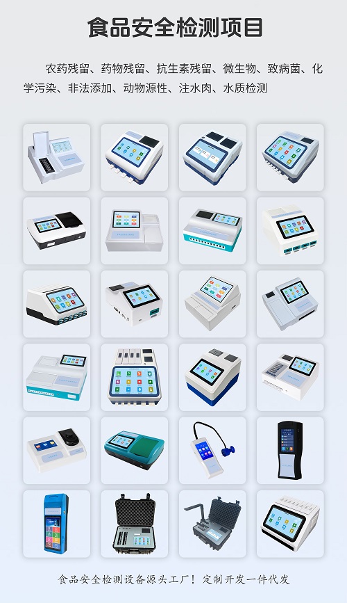 6、食品檢驗部門對食品衛生進行檢測,深芬儀器研發生產的CSY系列食品安全測定儀可快速檢測有機磷和氨基甲酸酯類農藥殘留、亞硝酸鹽、二氧化硫、亞硫酸鹽、過氧化值、酸價、維生素C、甲醛、重金屬汞、重金屬鉛、重金屬鎘、重金屬鉻、重金屬砷、食鹽碘、蘇丹紅、蛋白質、木耳硫酸鎂、硝酸鹽、茶多酚、醬油氨基酸態氮、揮發性鹽基氮、組胺、三甲胺、細菌毒素、硼砂、雙氧水、溴酸鉀、工業火堿、淀粉、甲醇、過氧化苯甲酰、糧食新鮮度(脂肪酸值)、苯甲酸鈉、甜蜜素、山梨酸鉀、氯化鈉、硫酸鋁鉀(明礬)、糖精鈉等檢測項目,深芬儀器食品安全測定儀愿為檢測部門、食品生產企業、種植養殖單位、消費者提供科學、公正、可靠、及時的檢測技術指導與儀器供應服務。幫您守護食品安全。一方面可以確保市場流行食物的安全性,另一方面可以維持社會上的穩定。同樣的,只有嚴格把握食品衛生質量,才能更好為國家社會經濟提供物質上的保證,可以進一步提高我國產品質量水平奠定基礎。